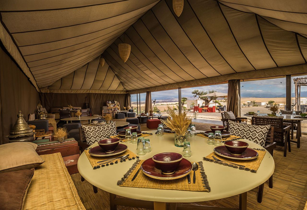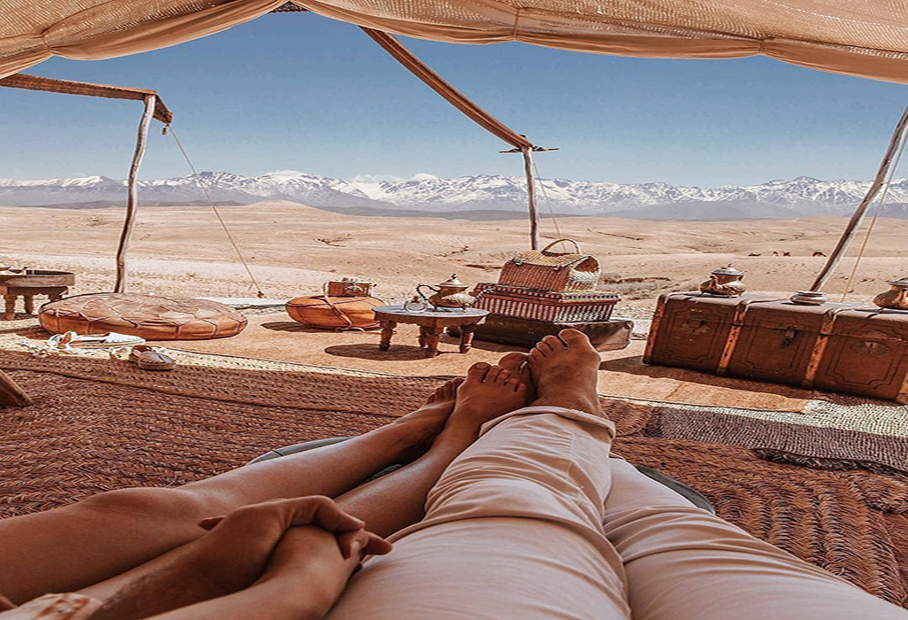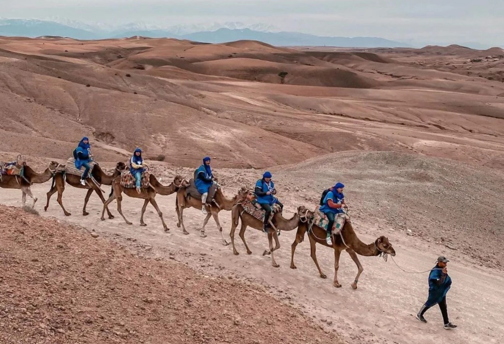Arrival at Agafay Desert: Upon arrival, begin your desert adventure with a relaxing camel ride. Feel the rhythm of the camel’s steps as you traverse the rocky dunes and enjoy the panoramic views of the surrounding desert and mountains.