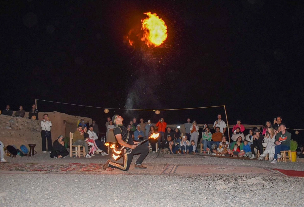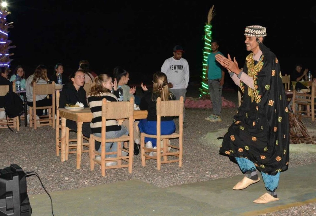 Enjoy a flavorful three-course meal, including a variety of Moroccan specialties. Indulge in the rich tastes of freshly prepared dishes while soaking in the ambiance of the desert night.